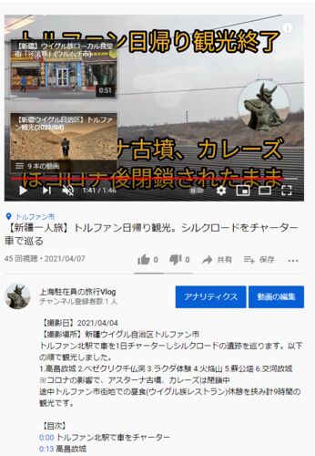 2021/04/03(土)~05(月)中国清明節の3連休に新疆ウイグル自治区に旅行に行きました。シルクロードの拠点として栄えた「トルファン市」の景色はかなり良かったのでスマホで動画を撮影し、Youtubeにアップしてみました。 新疆旅行Vlog 「InShot」を使った動画…