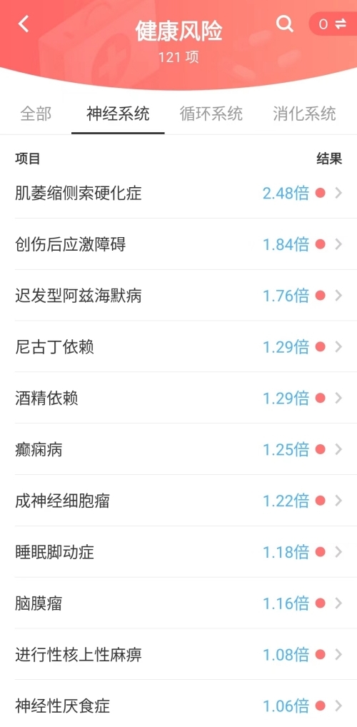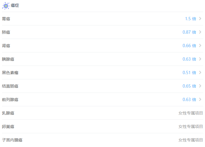 健康リスクは、がん、生活習慣病等121の病気に対するリスクを表示