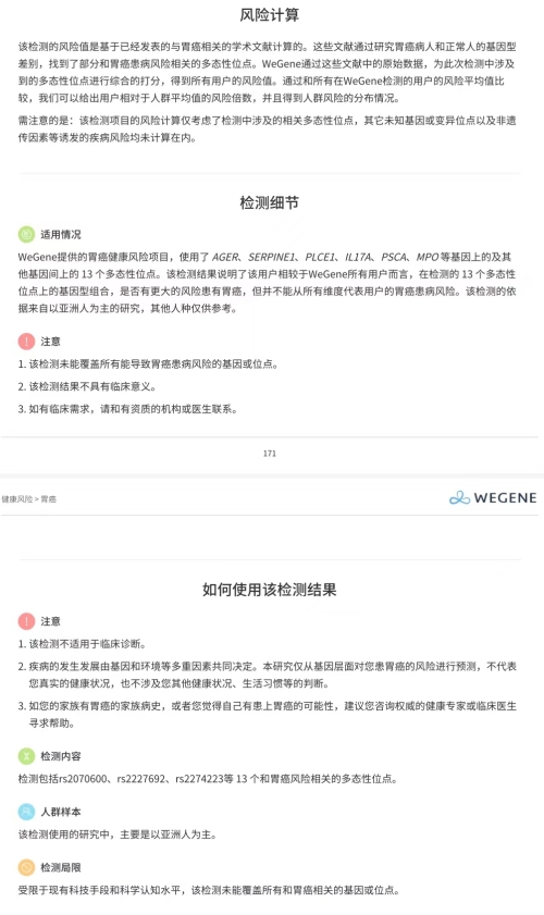 例えば、胃癌リスクが1.50倍と「判定された根拠」と「発現を抑えるためにどのような行動をすればよいのか」だけでも数ページの記載があります。