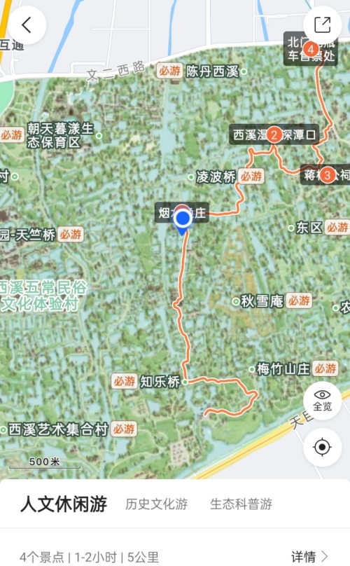 地図アプリ「高德地图」のおすすめ観光ルートの中で、一番移動距離が少ない5kmコースに沿って進みます。